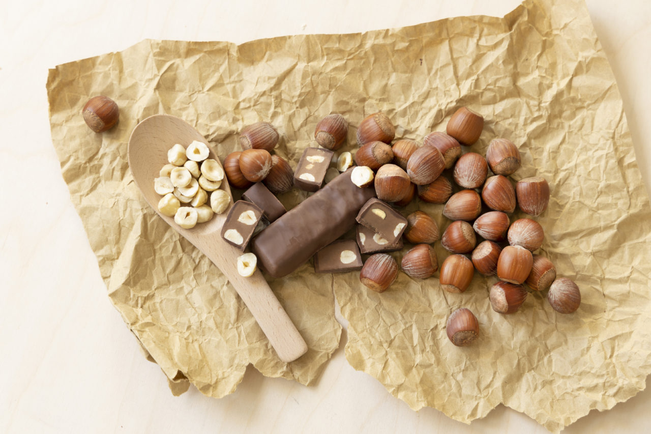 Cane sugar*, cocoa mass*, ground roasted hazelnuts* (19%), whole roasted hazelnuts* (17%), cocoa butter*. Chocolate contains: cocoa solids 51% minimum. Chocolate contains: cocoa solids 51 % minimum. *from organic agriculture May contain traces of almond and milk.