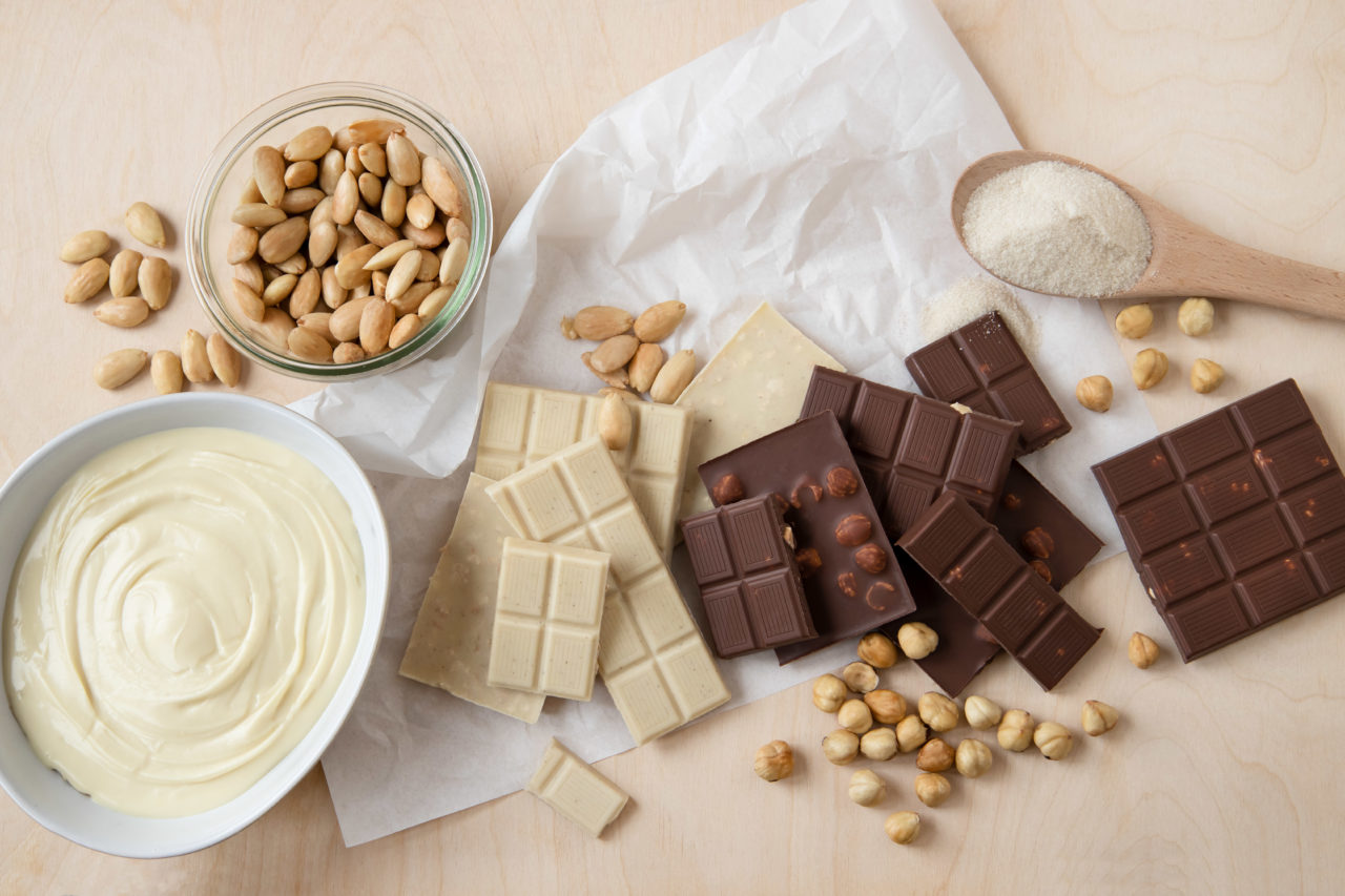 Reissirup*, Rohrzucker*, Kakaobutter*, Agavendicksaft*, Reisprotein*, Kakaomasse*, Sonnenblumenprotein*, MANDELN*, Sonnenblumenöl*, Tapiokaextrakt*, Dattelsirup*, Emulgator: Sonnenblumenlecithine*; Vanilleextrakt*, Salz, Aroma*. *aus kontrolliert biologischem Anbau. Kann Spuren von ERDNUSS, SOJA, anderen SCHALENFRÜCHTEN, SESAM, GLUTENHALTIGEM GETREIDE, EI und MILCH enthalten.