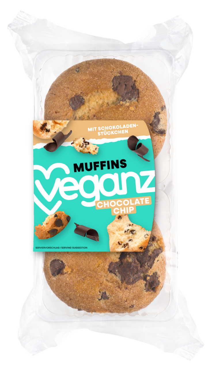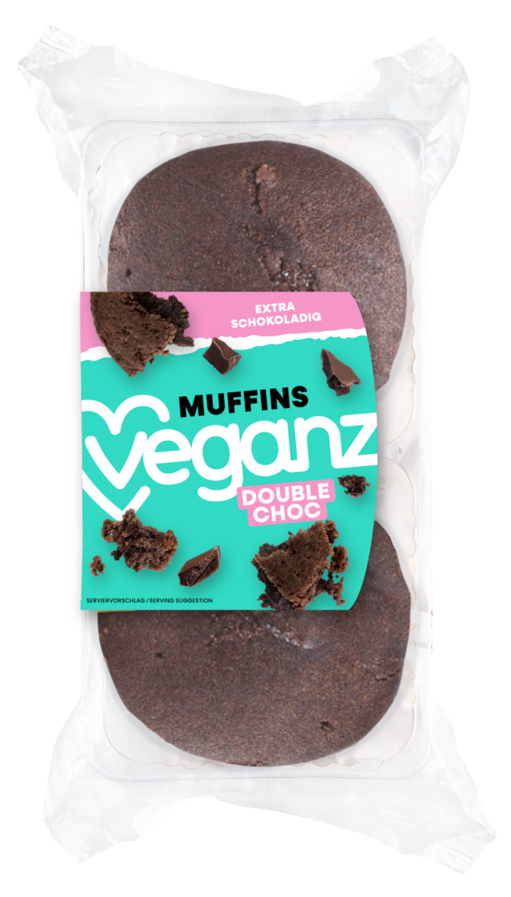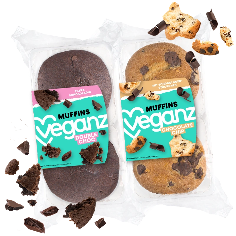 Chocolate Chip Muffins Double Choc Muffins Are you in the mood for vegan muffins, but your baking skills leave something to be desired? Never fear! Our Veganz Chocolate Chip Muffins are here! You don’t have to be a master pastry chef or pâtissier to enjoy them: Fluffy, moist, crunchy chocolate chips and ready to eat any time. Oh yes, sweet delights have never been this easy! Nutrition information Nutrition Information per 100 g Energy 1694 kJ 405 kcal Fat 19 g - of which saturates 3 g Carbohydrate 55 g - of which sugars 27 g Protein 4.5 g Salt 1.5 g Ingredients Sugar, wheat flour, rapeseed oil, chocolate chips (11%) (sugar, cocoa mass, cocoa butter, strongly de-oiled cocoa, emulsifier: sunflower lecithin), wheat starch, humectant: glycerine; raising agents: diphosphates, sodium carbonates; natural flavouring, wheat gluten, salt, potato protein, emulsifier: sunflower lecithin; thickener: sodium alginate. Cocoa: 40% min. chocolate. 🛈 Available here shop.veganz.com Puroshop | CZ Rohlik | CZ Lidl | CH AEZ / HIT | DE REWE | DE kokku-online.de | DE Globus | DE Spar | SI Amazon Fresh Vekoop | DE Lidl | DE ALDI SÜD | DE EDEKA | DE MPREIS | IT Show more Luke and Leia, Fred and George Weasley, the Veganz Double Choc Muffins – Twins that have that special something. Some are exceptionally powerful, others magically cheeky, while our two vegan chocolate muffins are extra fluffy, moist and chocolaty. Where do they get their double-chocolate power from? Crunchy chocolate pieces and lots of cocoa in the batter. What a dreamteam! Nutrition information Nutrition Information per 100 g Energy 1688 kJ 404 kcal Fat 20 g - of which saturates 3.1 g Carbohydrate 52 g - of which sugars 27 g Protein 4.7 g Salt 1.5 g Ingredients Sugar, rapeseed oil, wheat flour, chocolate chips (11%) (sugar, cocoa mass, cocoa butter, strongly deoiled cocoa, emulsifier: sunflower lecithin), wheat starch, humectant: glycerine; cocoa strongly defatted (3,5%), raising agents: diphosphates, sodium carbonates; natural flavouring, wheat gluten, salt, potato protein, emulsifier: sunflower lecithin; thickener: sodium alginate. Cocoa: at least 40%. May contain traces of nuts, egg and milk. 🛈 Available here shop.veganz.com Puroshop | CZ Rohlik | CZ Lidl | CH AEZ / HIT | DE REWE | DE kokku-online.de | DE Globus | DE EDEKA | DE coop | CH Spar | SI Amazon Fresh Vekoop | DE Lidl | DE ALDI SÜD | DE MPREIS | IT Show more