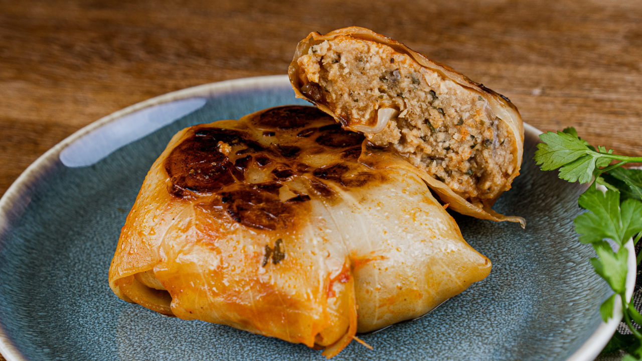 Vegan cabbage rollswith the Veganz soy mince Here’s a really hearty recipe: Cabbage rolls. Completely plant-based, of course, with our fine Veganz soy mince for a hearty filling. Wrapped in a jacket of tender white cabbage leaves, braised, and cooked in a spicy gravy This post was made in collaboration with Hier kocht Alex. Preparation methods Cabbage roulades, cabbage rolls, or cabbage sausage – a dish with many names and a wide variety of preparation methods. This is because wrapped cabbage rolls are prepared in very different ways in different countries. In Germany they are typically made with red cabbage, kale, or, as in this recipe, white cabbage leaves. But in the Balkans, for example, the filled rolls are wrapped in grape leaves. The filling Our Veganz soy granules form the basis of the vegan version of the filling for this recipe. They are then well seasoned, bound with chickpea flour, and enhanced with fresh parsley. You can find the soy granules in Veekopp’s online shop and in our partners’ participating markets. Can’t find the product yet in your supermarket? In that case, simply submit this wish list on your next shopping trip. By loading the video you accept the privacy statement of YouTube.More ... Load video Always unlock YouTube Ingredients (4 people) 1 head of white cappage 150 g Veganz Soy Mince 100 g chickpea flour 50 g breadcrumbs 1 onion 1 tsp mustard 1 tsp salt 2 pinches pepper 1 tsp sweet paprika powder 1 tsp marjoram, dried ½ bunch parsley, fresh 2 tbs tomato paste 1 l vegetable broth olive oil, for sauteing Portions people: Got everything ready? Let's go! Pour hot, lightly salted water over the soy granules and allow to soak for 10 minutes. Dice the onion and sauté in olive oil until translucent, finely chop the parsley. Bring a large pot of water to a boil, add the head of cabbage briefly. Lift out the cabbage and remove the outer 16 leaves (keep the remaining cabbage for another use). Blanch the cabbage leaves in boiling water for 1-2 minutes, remove and drain well on paper towels. Cut out the end of each cabbage leaf on the rib in a v-shape. Drain the soy granules. Squeeze the granules with your hands to remove excess moisture and place in a mixing bowl with the onion, chopped parsley, chickpea flour, breadcrumbs, mustard, salt, pepper, paprika, and marjoram. Mix all the ingredients together. Place 2 cabbage leaves on top of each other. Form 6-8 rectangular patties from the minced mixture. 6. Place one patty on each of the cabbage rolls, roll them into a roulade, and secure with kitchen twine. Heat the oil in a large frying pan and sear cabbage rolls on both sides. Add tomato paste, sauté briefly and then deglaze with broth. Bring the broth to a boil briefly, reduce the heat, cover the pot, and simmer for approx. 45 minutes over medium heat. Serve with a side dish of your choice. Bon appetit! Quelle Recipe from: Hier kocht Alex Alexander Flohr, better known as "Hier kocht Alex" is not exactly the prototype vegan considering he is a master road builder. As a YouTuber, cookbook author, and TV chef, he shows with his recipes that you don’t have to do without as a vegan. From Königsberger meatballs to Soljanka, he brings well-known classics to the table in a purely plant-based version! Source: Hier kocht Alex Copyright: Hier kocht Alex