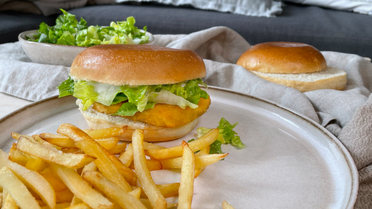 Vegan Crispy Chicken BurgerWith Veganz Vegan Classic Schnitzel With only four ingredients you can rekindle your childhood memories of your favourite fast food burger. The Veganz Vegan Classic Schnitzel and the Veganz Sandwich Spread Classic are the perfect base for this. In no time at all, you can create your own vegan crispy chicken burger and do it not only in the comfort of your home, but also completely vegan. That’s what we call a win-win situation. Homemade Vegan Fast Food Admittedly, classic fast food is tasty, but unfortunately has more disadvantages than advantages when animal products such as cheese and meat patties are involved. These include environmental pollution, poor nutrient distribution and short satiety effect, to name just a few shortcomings. So why not try cooking one of our favourite fast food meals at home? You can save not only in terms of calories, but also do the environment a huge favour. In this recipe, we’ll show you how to make a vegan chicken burger easily, with just a few ingredients and less than ten minutes. Ingredients (2 Serves) 2 burger buns 2 Veganz Vegan Classic Schnitzel 2 tbsp Veganz Sandwich Spread Classic A handful of salad of your choice Oil, for fying Fries or another side of your choice Portions Serves: Fry the Veganz Vegan Classic Schnitzel in a little oil for approx. 6 minutes, turning several times, until crispy. In the meantime, cut up the salad and slice the burger buns, then fill each with a tablespoon of Sandwich Spread and the salad. When the Veganz Vegan Classic Schnitzel are ready, place them inside the burger buns, fold everything together, then you’re finished! Suitable sides would be fries, potatoes or a tasty salad. Unsere Produkte für deine Rezeptkreation